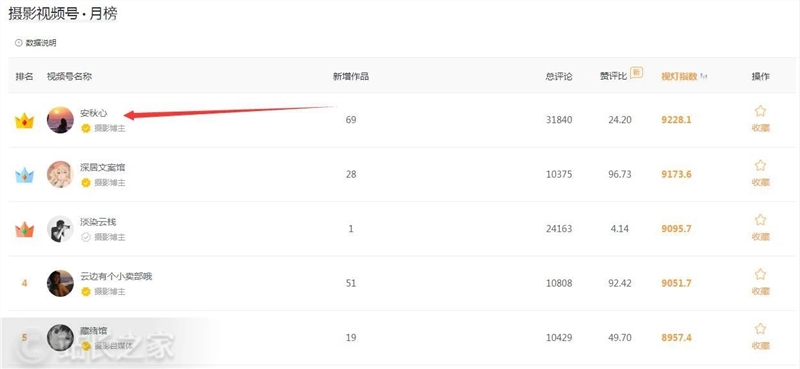今天站长之家要分享的视频号【安秋心】走的的就是这种路子。根据第三方数据平台视灯显示,该账号排在摄影视频号月榜(1月份)第一名。