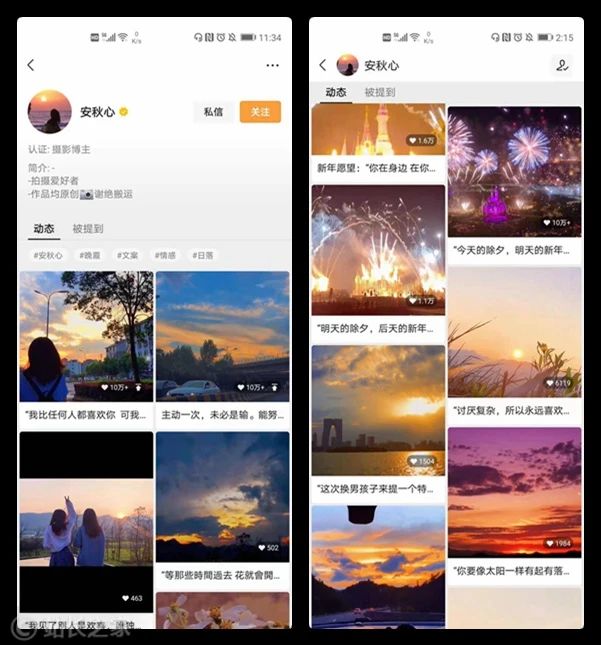 【安秋心】这个账号走的正是唯美文艺路线,从纯粹的摄影美学角度,让用户感受到天空角度的魅力。