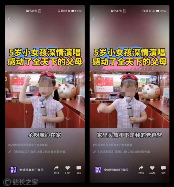 以最新发布的作品“5岁小女孩深情演唱感动了全天下的父母”为例,歌词的内容是:“人在外头,心呀嘛心在家,家里头放不下的是我的老爸爸。”