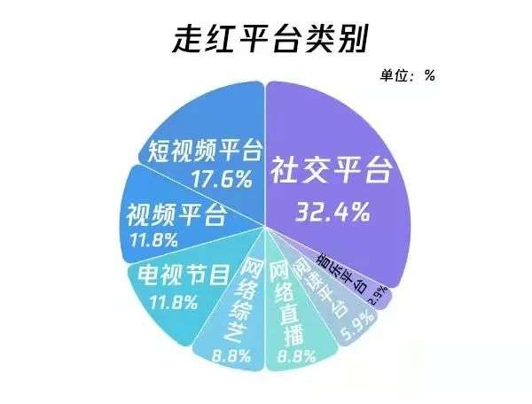 从对30多位素人网红走红平台的分析来看,其中绝大多数都是依靠三大平台——社交平台、短视频平台和长视频平台。