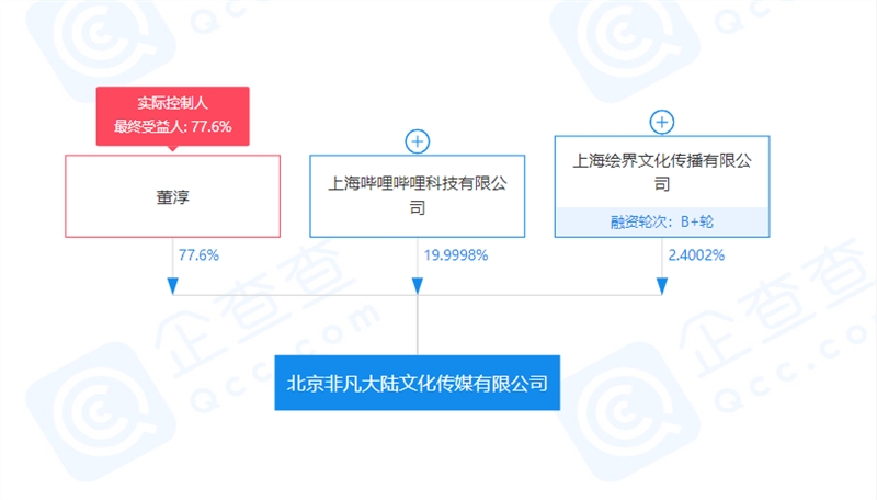 近日,上海哔哩哔哩科技有限公司(以下简称“哔哩哔哩科技”)入股北京非凡大陆文化传媒有限公司(以下简称“非凡大陆”),持有非凡大陆约20%股权。