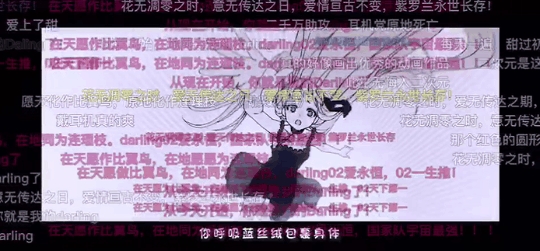 当《玉子市场》、《紫罗兰永恒花园》、《月刊少女野崎君》等动画片段出现,屏幕就被满满的弹幕占据。