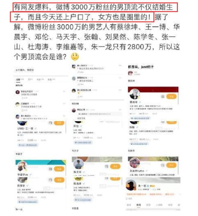 然而,明星们的各种私生活的瓜在网上依然是曝不停。1月21日,顶级流量小生华晨宇的“大瓜”被某网友给供了出来。原先只是在论坛上以文字形式直指华晨宇已和张碧晨结婚生子了,如今儿子也一岁了,张碧晨正在给孩子上户口。
