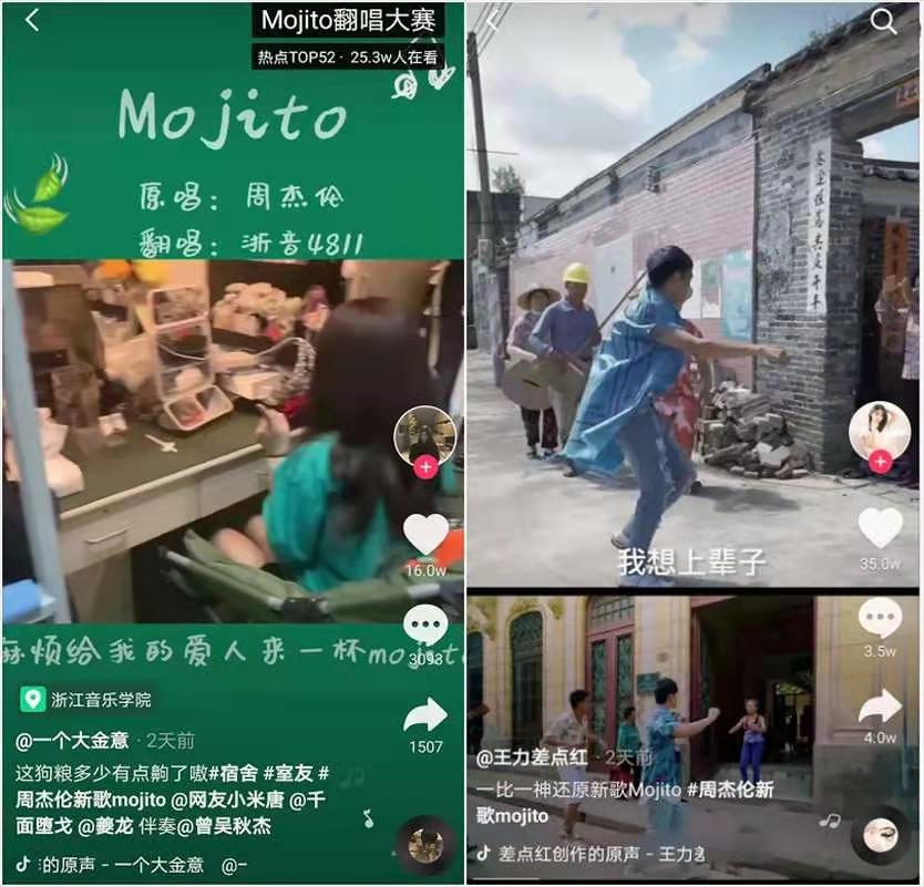 很多达人就将《Mojito》用不同的方式进行演绎,暗暗较劲,看谁的演绎版本更受欢迎。