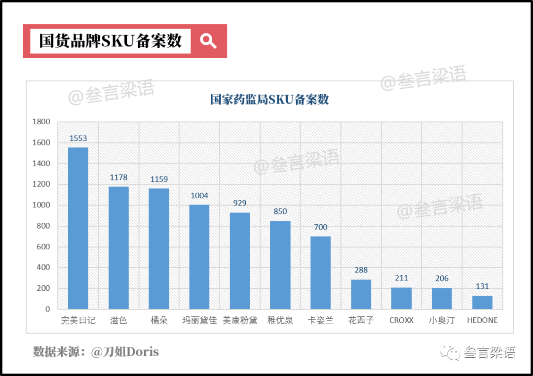 完美日记在新品研发与销售上的速度,让人瞠目结舌。相比国际品牌平均7-18个月的新品开发流程,完美日记研发产品少于6个月。在国家药监局官网上可以看到,完美日记在2018年-2019年期间备案的SKU数超过1500个,相当于卡姿兰的2倍。完美日记在口红、眼影两大品类上疯狂出新,并以百元低价的模式迅速占领市场。