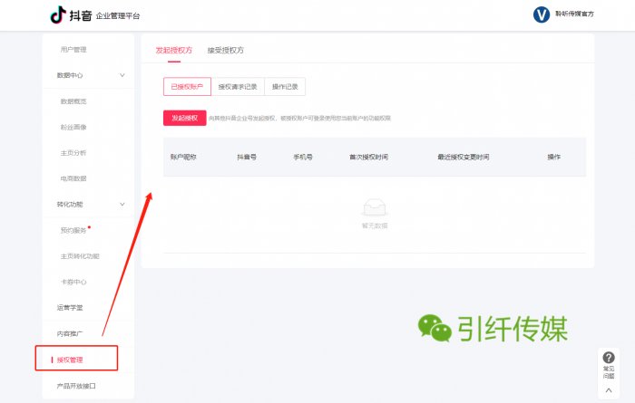1. 用子帐号角色登录企业管理后台,点击左侧【授权管理】-【发起授权】