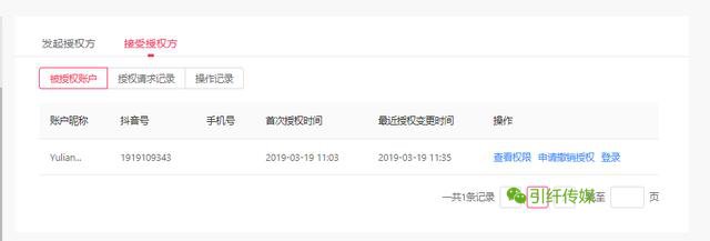 1. 通过子帐号角色的授权请求后,便可以登录子帐号角色进行操作了。在【接受授权方】点击【被授权账户】,点击【登录】。