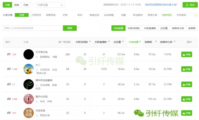 抖音小店销量日榜情况