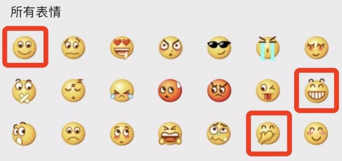像“微笑”、“偷笑”、“呲牙笑”这种皮笑肉不笑、却很多人还在用的表情,就继续保留着。