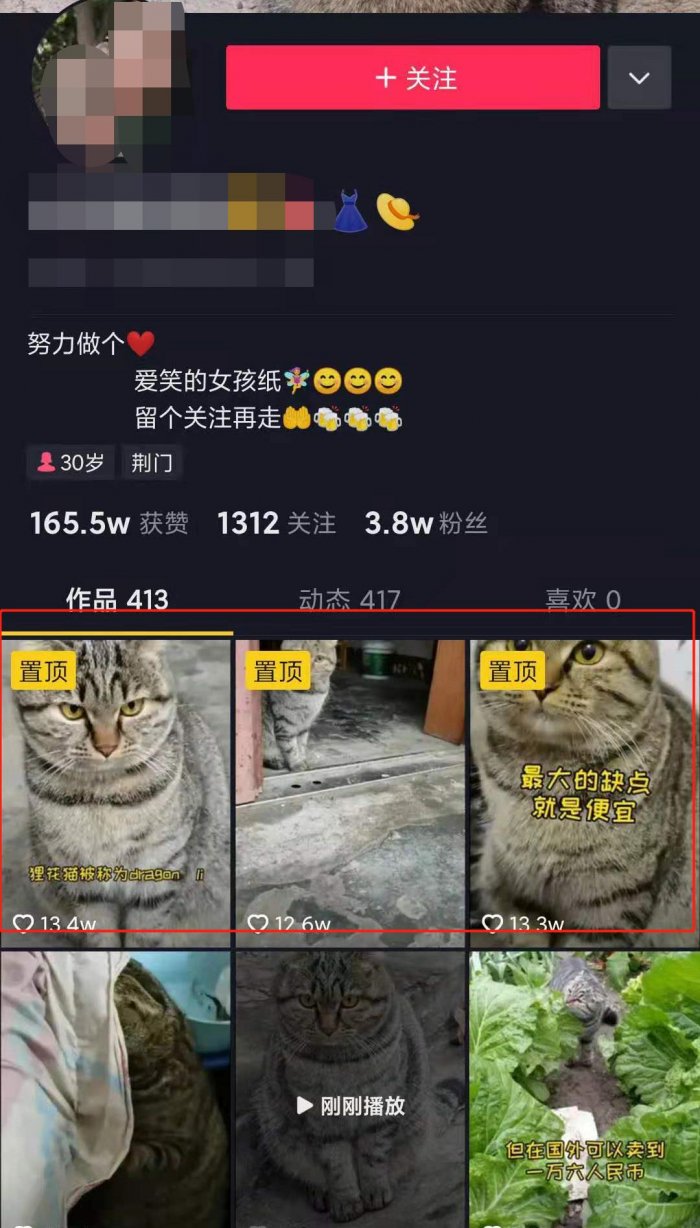因为用户在刷到你的热门视频的时候,有一大部分的人可能都会点进你的主页看看其他的视频,而且先看的一般都是你的置顶视频,建议把置顶视频设置成和热门视频垂直度高相似度高的视频,这样会大大提高关注人数。如果是要变现的话,将能变现的视频设置为置顶。