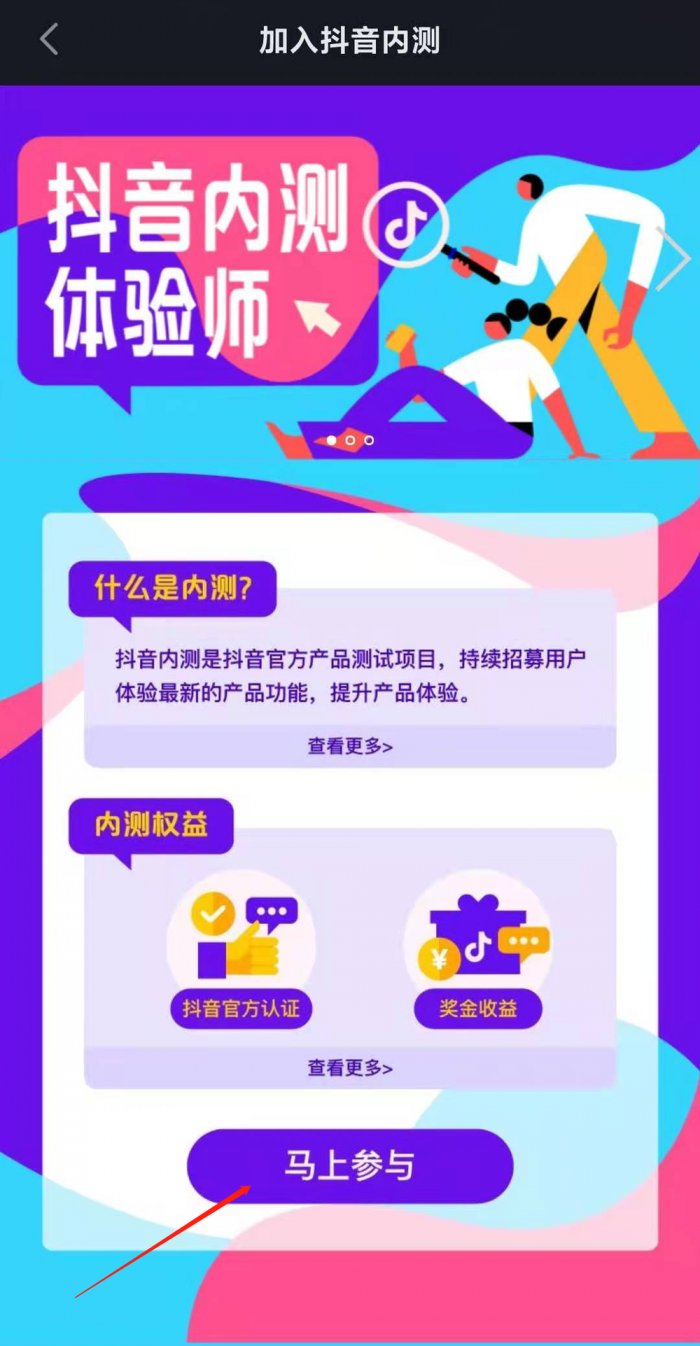 之后会跳出如何加入抖音内测的页面