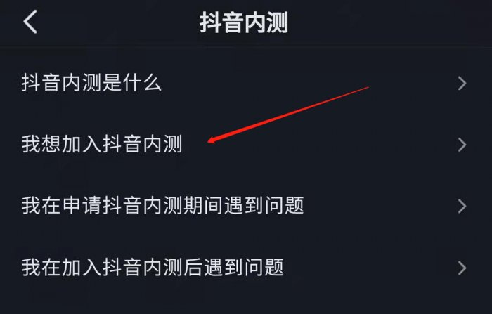 选择我想加入抖音内测