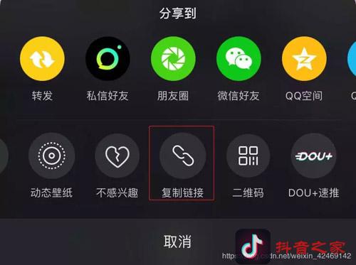 复制抖音视频地址,在你的抖音APP上:选择“分享”按钮, 然后选择 “复制链接”. 这样短视频的地址就会复制到你的剪贴板。