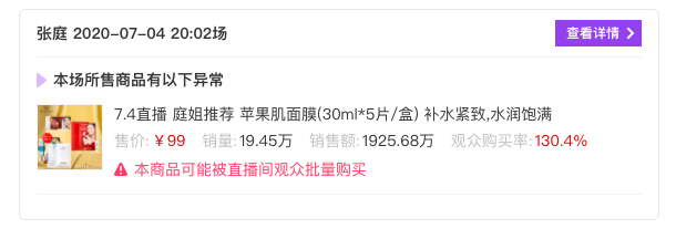 小葫芦平台显示张庭直播带货数据异常