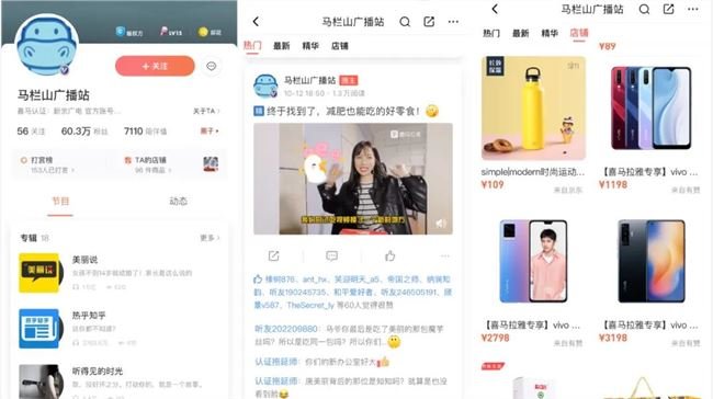 喜马拉雅平台带货TOP1的马栏山广播站拥有60万粉丝,最热门的专辑播放量破亿。除了音频节目之外,马栏山广播站也非常积极的经营自己的“圈子”,并尝试制作视频。