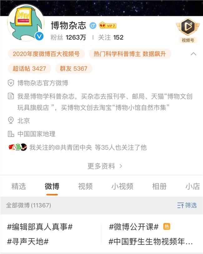 博物杂志的官方微博是小编关注了很久的一个微博账号,最初应该跟大多数人一样,是因为喜欢这种科普类账号带来的知识和讲解。