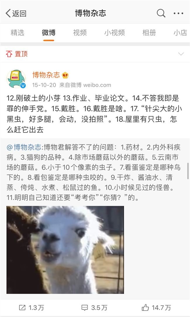 比如博物杂志微博最火的板块其实就是解答网友的识别动物、植物的疑问,但是也直截了当的告诉网友们,有18个种类他们无法解答。