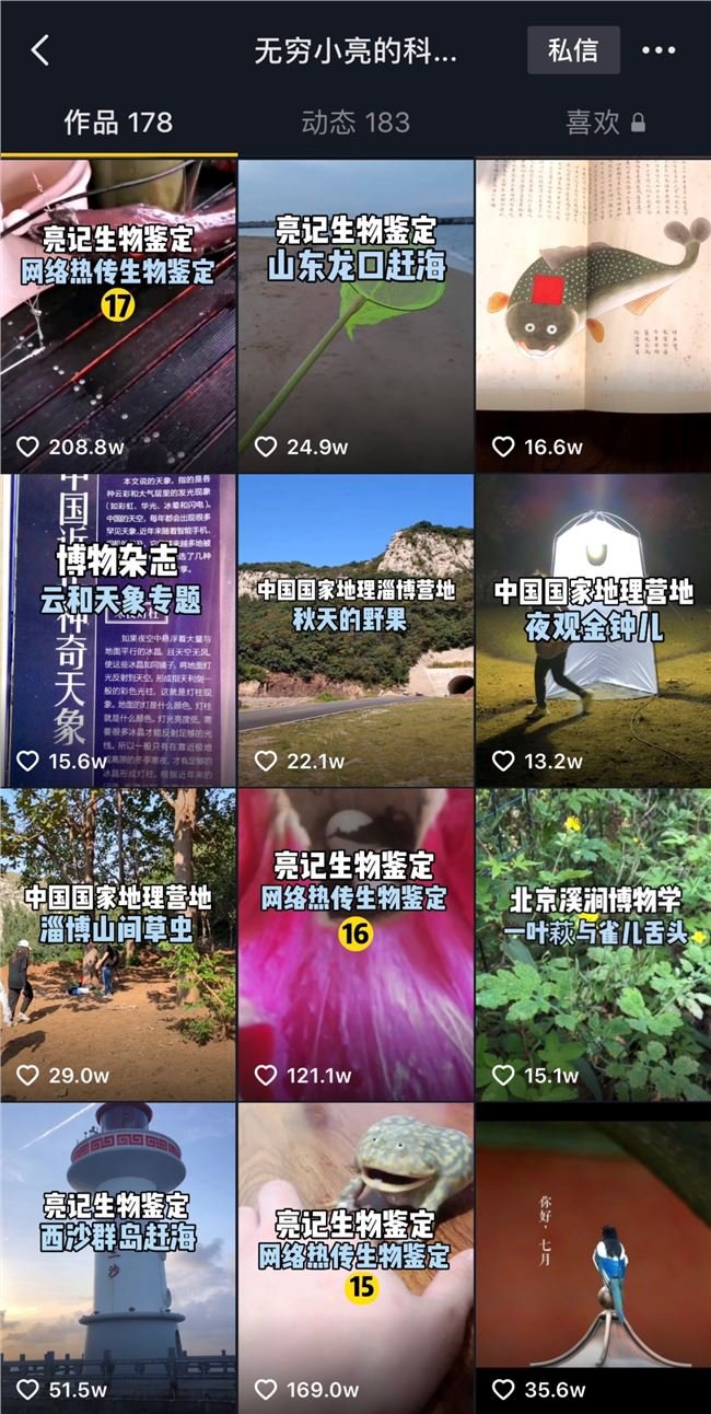 其实前文说了那么多,就是让大家在不了博物抖音账号的情况下,可以预先知道博物的概况。下面我们就来具体的说一下博物在抖音平台的账号——@无穷小亮的科普日常。