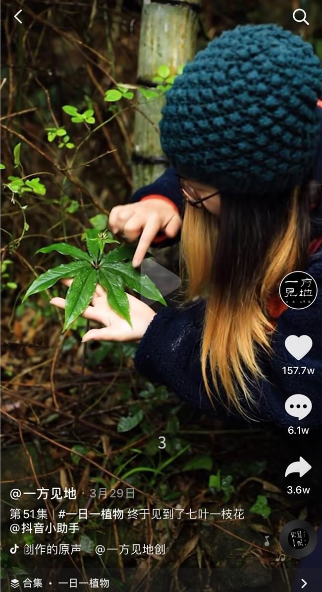 该账号也是一个垂直于科普类目的号,但是这个账号日常专注于科普的都是植物类。