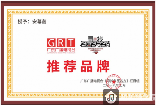 安幕茵系列产品,荣获广东广播电视台《寻找名医名方》栏目组推荐品牌