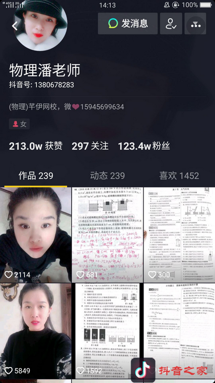 抖音具有直播功能,有人唱歌,有人与网友闲聊,但抖音上却还有用抖音直播讲物理课的这样的一位老师潘老师。她的教学宗旨就是不让广大学子花冤枉钱,在抖音上就可以学习物理知识,并为同学们整理知识点,搜集习题。我们不禁也可以看到,在互联网的时代,网络教学也可以是一种潮流,这都是我们当代师范生需要掌握和学习的一些本领。