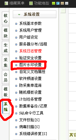 2、点击系统设置,在点击系统设置里面的图片水印设置 ,,如图