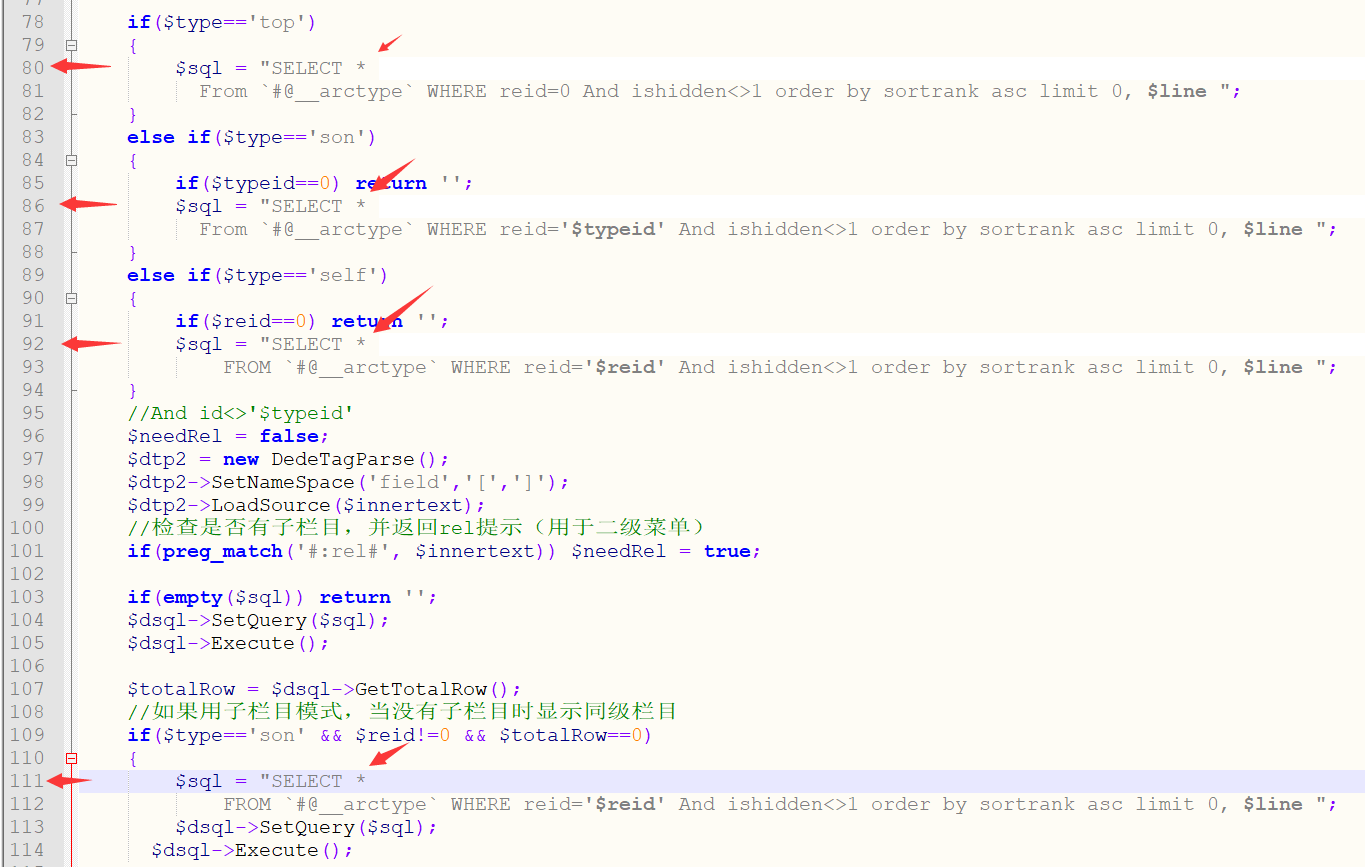 6、打开 /include/taglib/channel.lib.php 找到,80、86、92、111行的