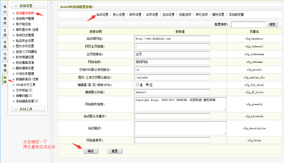 答:因为你还需要点一次 系统-系统基本参数-站点设置 。