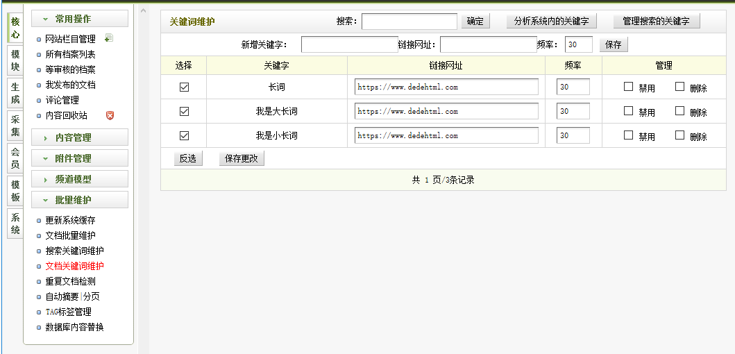 - 后台-系统-其他选项-关键词替换次数 【1】或者【0】