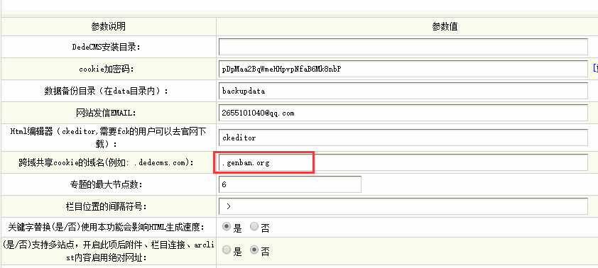 1、后台-系统-系统配置参数-核心设置-跨域共享cookie的域名,填上.dede58.com