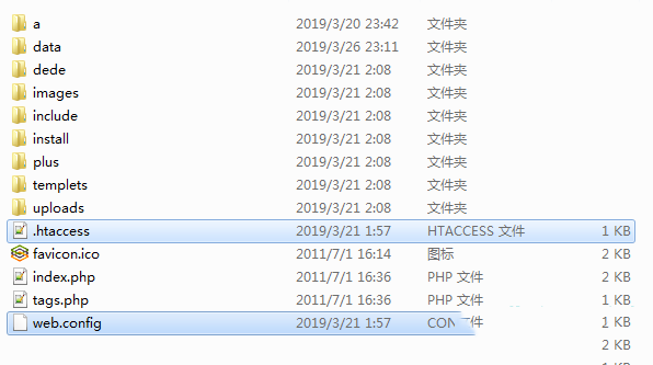 第四步:利用伪静态功能禁止以下目录运行php脚本 新建.htaccess 新建web.config 放在你的网站根目录