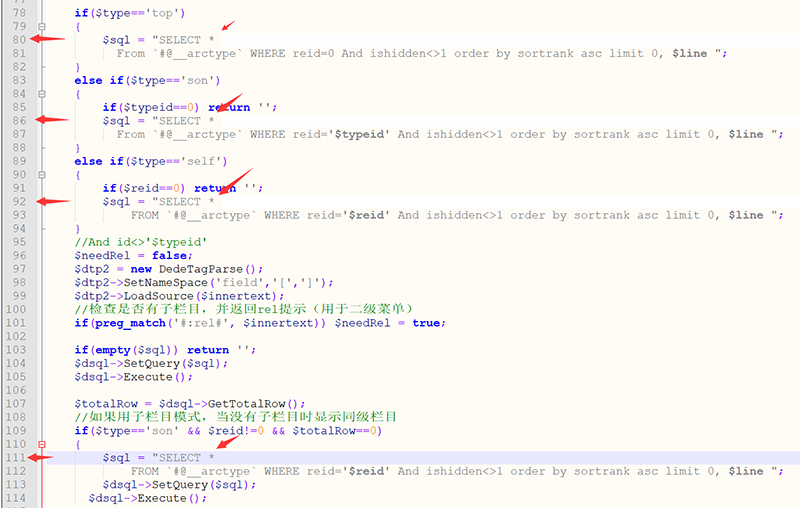 6、打开 /include/taglib/channel.lib.php 找到,80、86、92、111行的