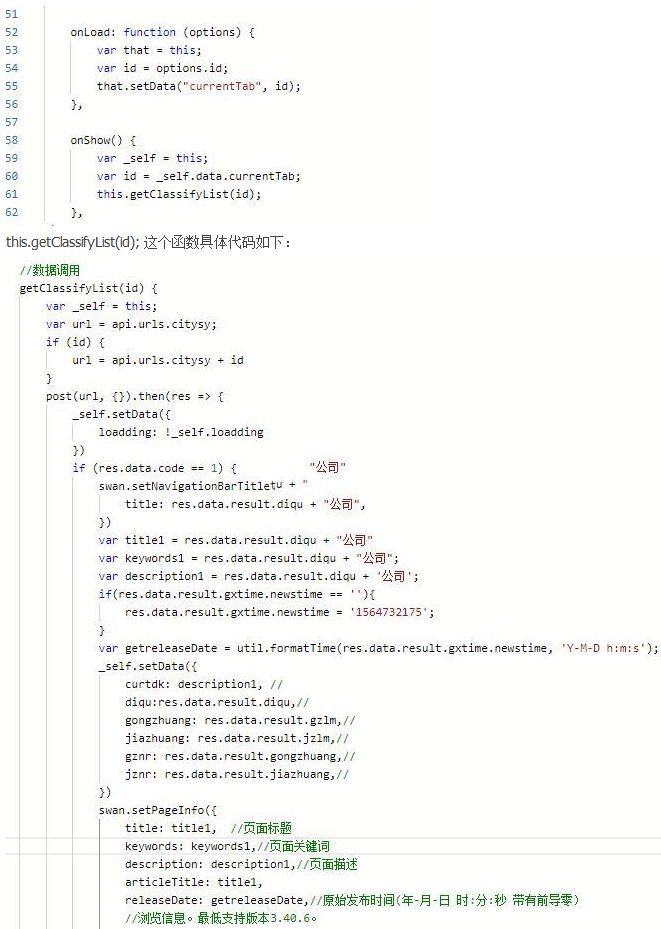 解决办法:onload函数中或缺页面id,赋值给页面变量。在onshow函数中通过页面变量id来调用具体数值,赋给页面的tdk数据
