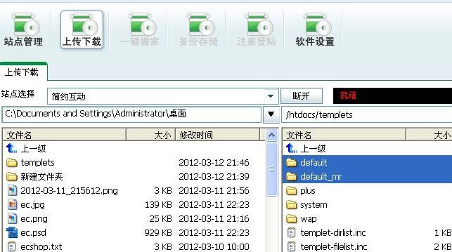 然后我们通过ftp找到根目录下的templets下的default文件,default文件就是织梦默认的模板文件。接下来我们把织梦默认的default重命名一下,然后把购买到的模板上传到这个目录下(我们的dede模板都是以default命名的 内部模板也是和默认的匹配的,如果是自己网上下载的要把文件明改成default)
