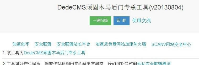 为此安全联盟出台了织梦DedeCMS顽固木马后门专杀工具,非常适合新手朋友的工具。