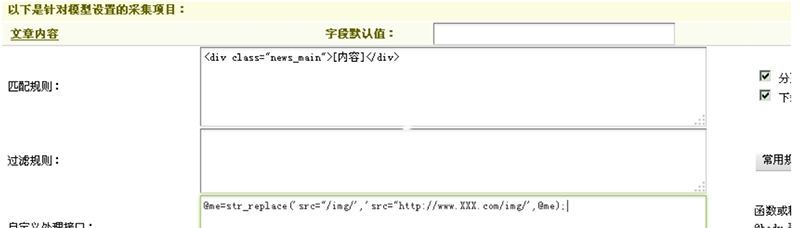 其实很简单,在采集规则的>文章内容 自定义处理接口:处输入一下内容