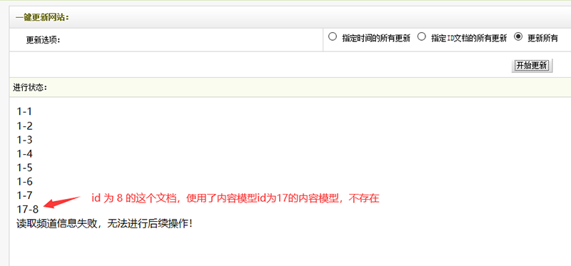那是因为有文档使用了以前添加的内容模型和栏目,而内容模型又删除了,文档还在,生成全站或者生成文档时就会提示“读取频道信息失败,无法进行后续操作!