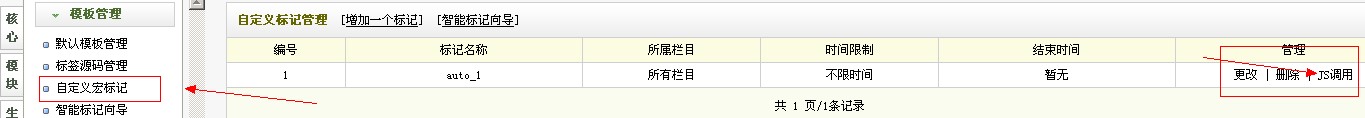 3、设置好之后保存,然后返回“自定义宏标记”界面,找到刚才创建的自定义标记,点击“管理”列的“JS调用