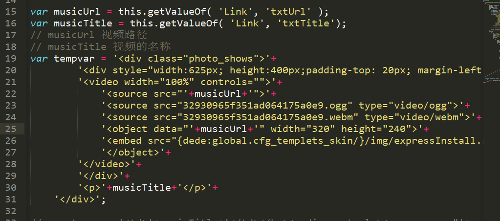 四、视频的样式如果不是你想要的,可以修改织梦目录includeckeditorpluginsddondialogsddon.js 文件中的 样式如图: