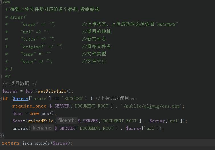 if ($array['state'] == 'SUCCESS') { //上传成功使用oss