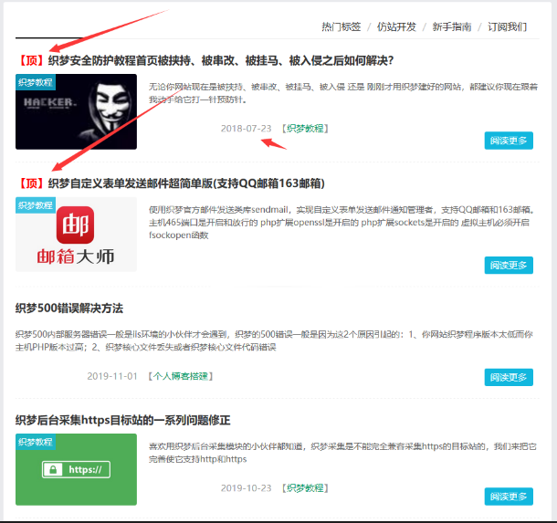 织梦默认自带置顶功能,我们只需要在后台文档【文章排序】里对文档进行置顶操作就行了