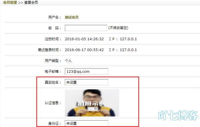 在/member/templets/images/文件夹下,新建图片名为shiming.jpg、v.png。实现未上传显示shiming.jpg图片,反之显示已上传的内容的效果,并显示加V图片,需要增加一个php判断: