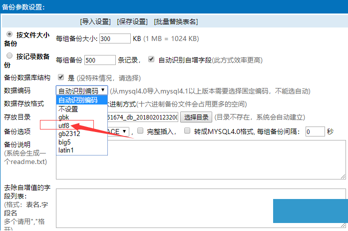 下面是比较关键的步骤,在数据编码中如果原来是GBK/GB2312编码的就应该选择UTF-8。