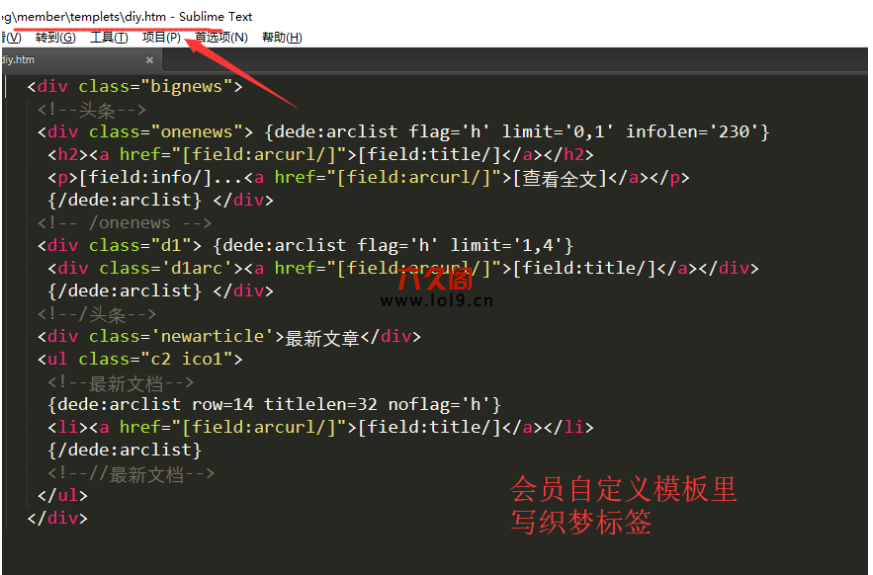 例如,我在会员模板目录里写一个 diy.htm 里面写织梦的标签