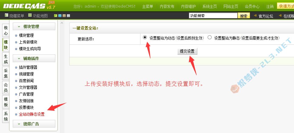 网站后台设置整站为动态