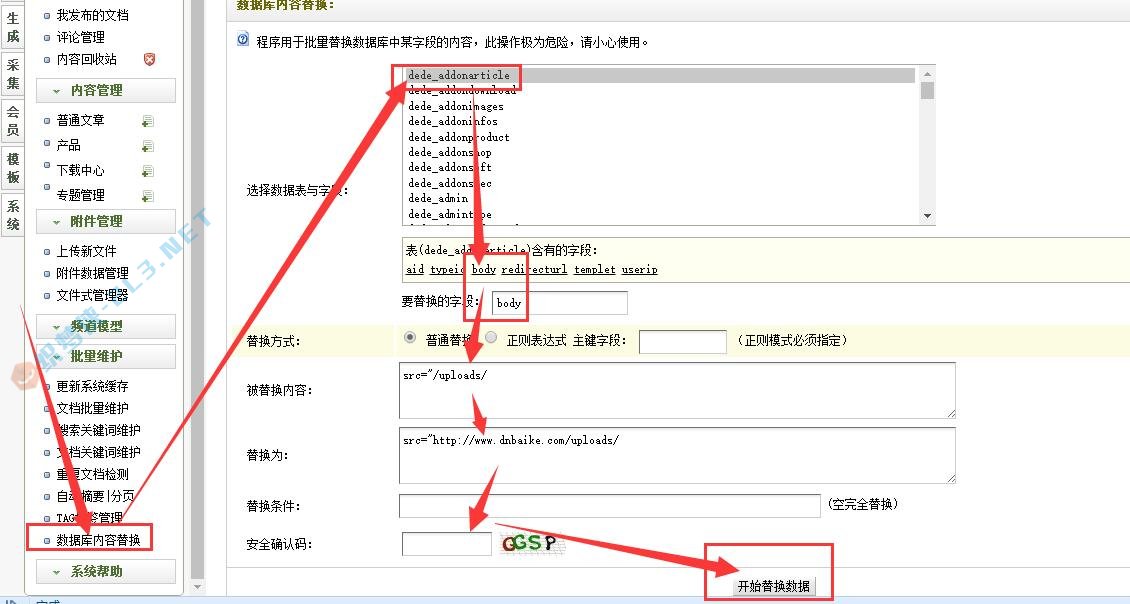 1.同样,先登录网址后台—>核心—>批量维护—>数据库内容替换