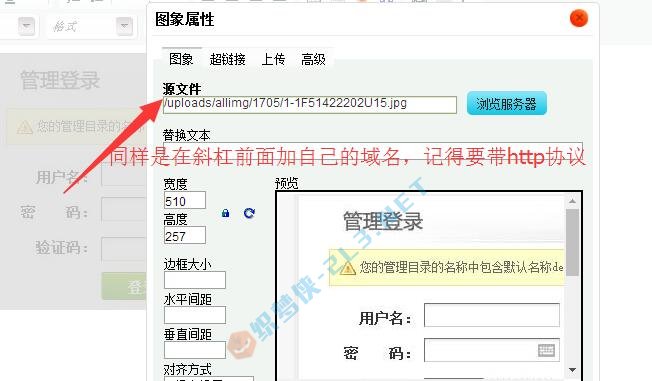 这个方法和第五种一样的操作思路,只是方式不同,就是上传图片的时候在图片编辑框加自己的域名