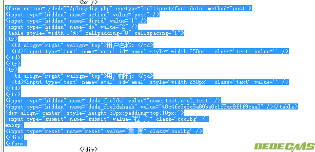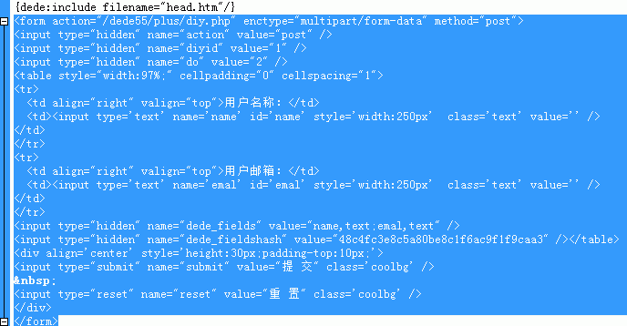 3. 查看源码 找到<form 开始 及 </form>之间的代码 复制下来
