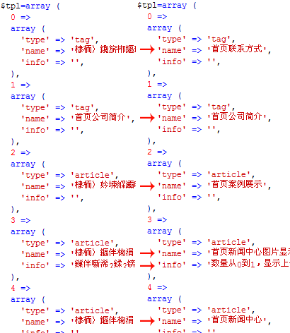 找到文件/data/cn_tpl_info.php,原因找了很久,想想应该是编码的原因。换成utf-8编码,再将对应的字段一一重新写好,如图。