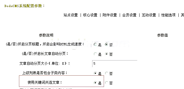 第一步:系统 —— 系统基本参数 —— 性能选项 —— 使用关键词关连文章 选 是